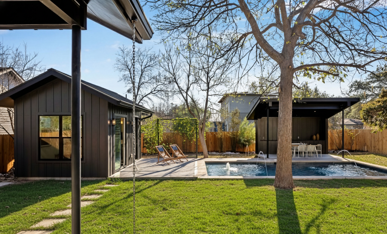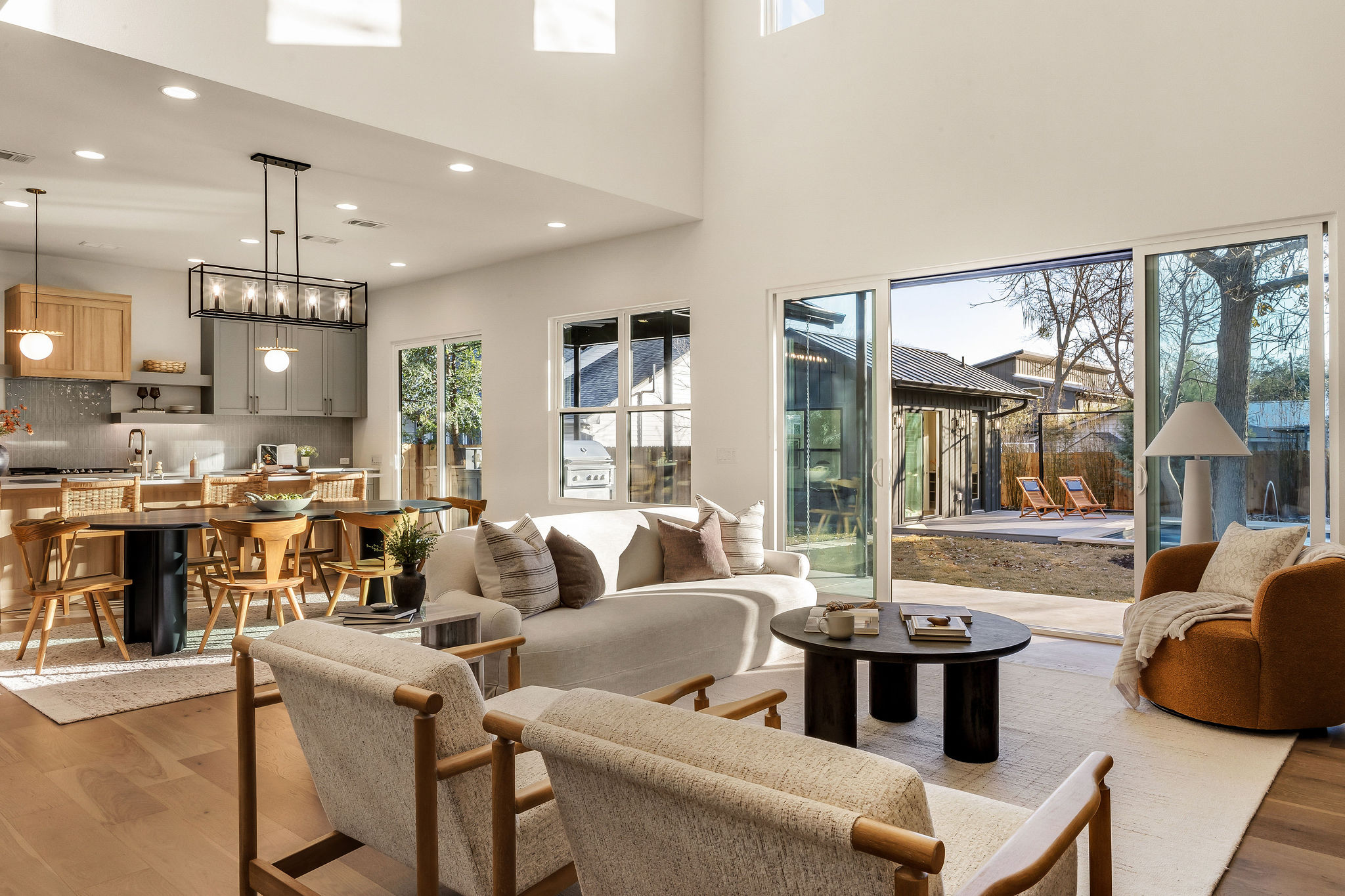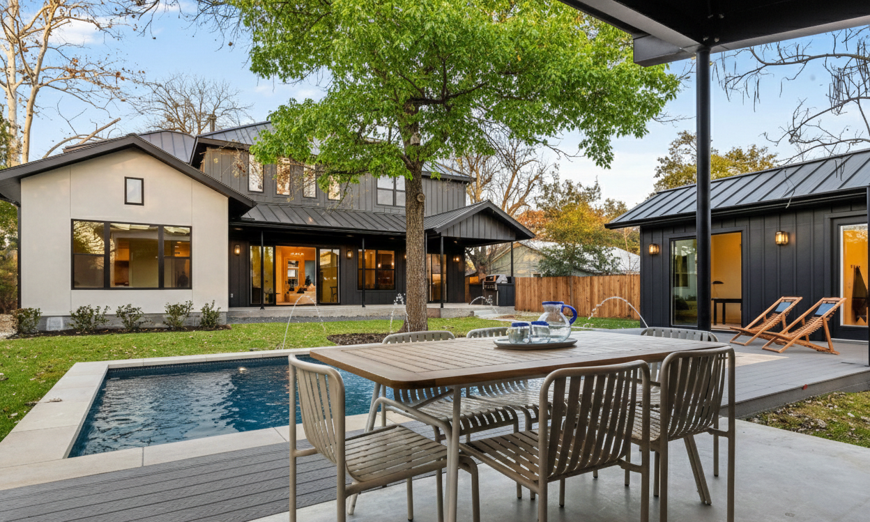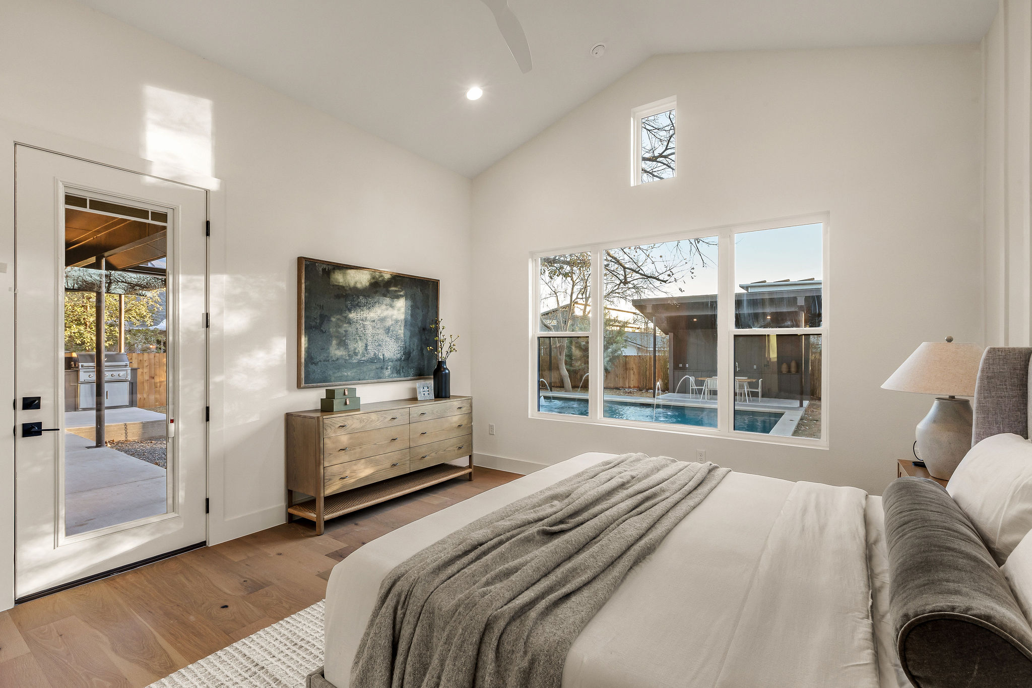 Welcome to 1301 Ruth Ave. in the Crestview Neighborhood. Gorgeous Custom Build featuring the Primary on Main in one of Austin's hottest neighborhoods. This Modern Pool House By Rivendale Homes features a bonus Casita !!!!!! In the main house, the primary and a secondary bedroom are down, with 2 bedrooms and a flex space up. The guest house can double as an exercise room, office, game day lounge, separate kid hangout, hobby room. This 2-story home features an open floor plan with tall ceilings, loads of windows allowing for abundant natural light, and thoughtful finishes throughout. The Primary Owner's suite redefines the spa experience with upgraded tile, soaking tub and oversized walk-in shower, situated on the main floor that leads out to the covered backyard patio and Pool + Pool House area. The kitchen, dining, and open living room w/ fireplace overlook the pool + Pool house and rear yard space through the dramatic sliding glass doors. The kitchen space includes a generous island with plenty of bar seating with an island sink, across is the gas cooktop. The spacious upstairs includes two bedrooms,Plus a large open flex area, game room/playroom or media room awaits . This large additional living area is hard to find in this well-established neighborhood. With Brentwood Social House, Stiles Switch BBQ, and many other restaurants and shops nearby plus Brentwood Park just minutes away, you’ll be able to take full advantage of the home’s incredible location! Don’t miss your chance to own your piece of Austin charm! 1,2,10 Warranty. NO HOA.