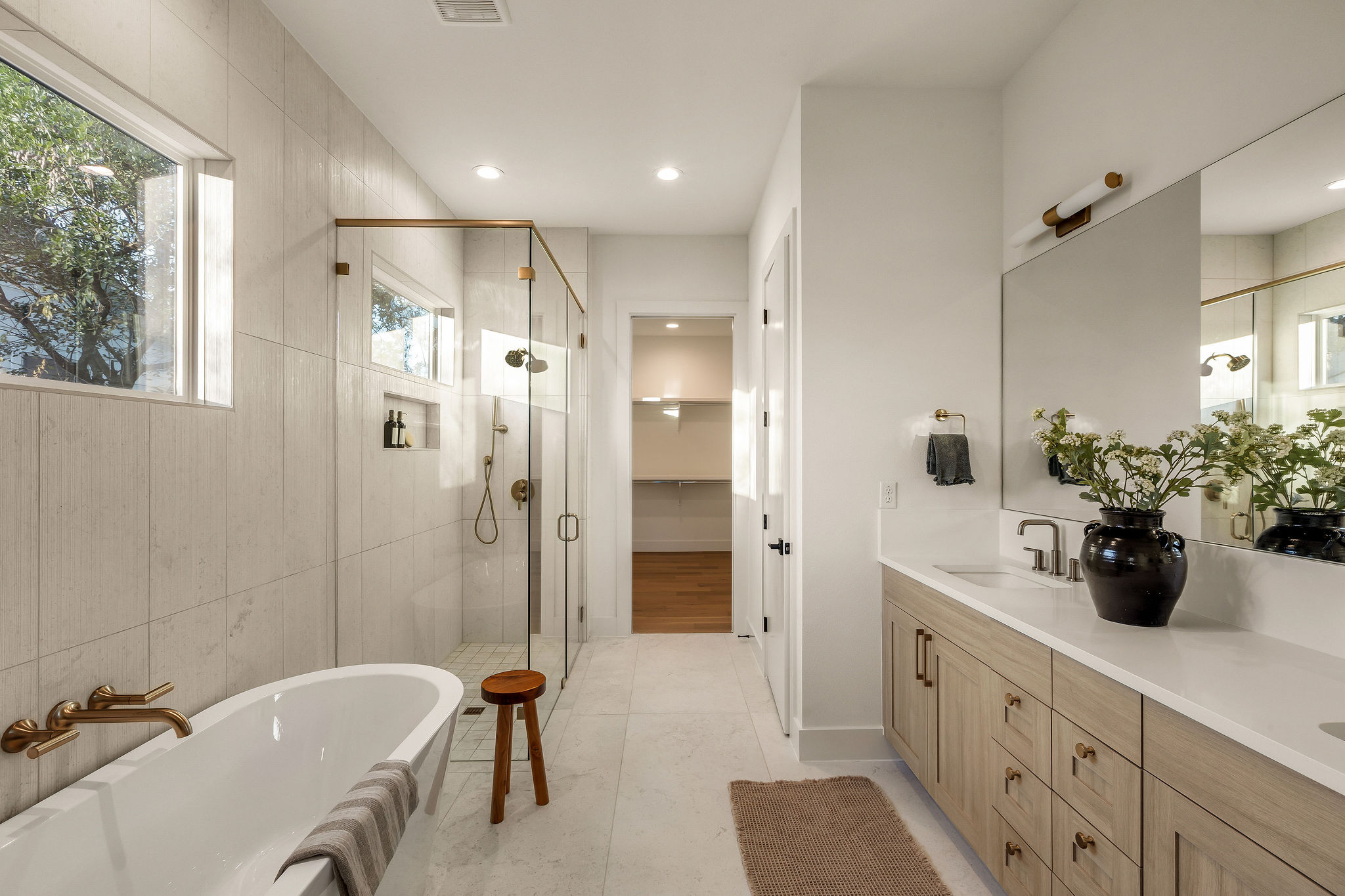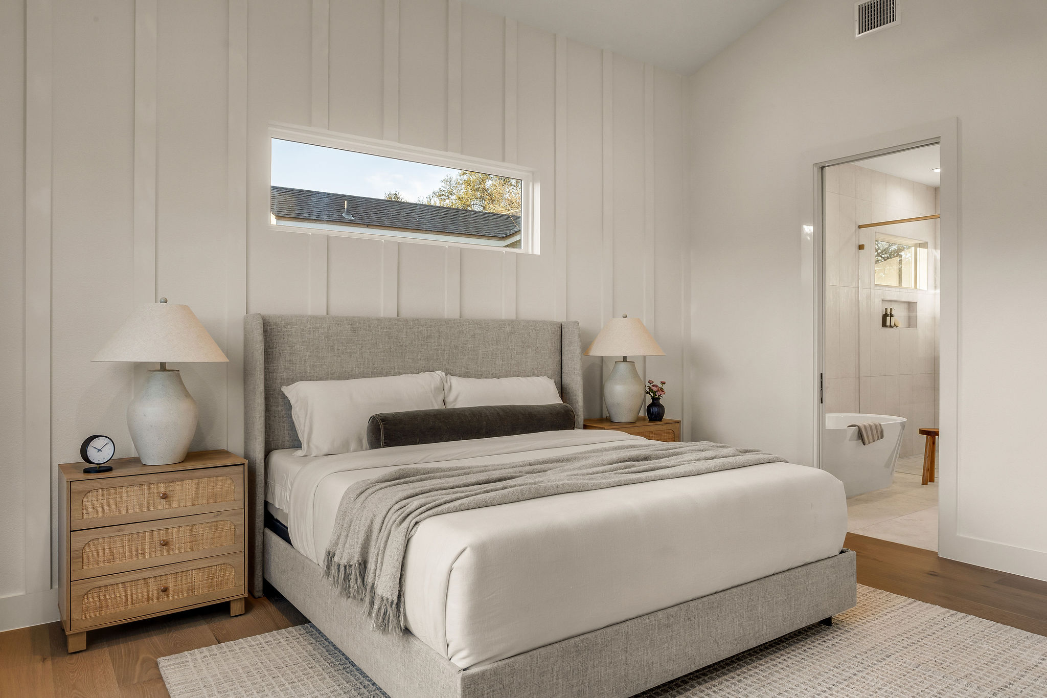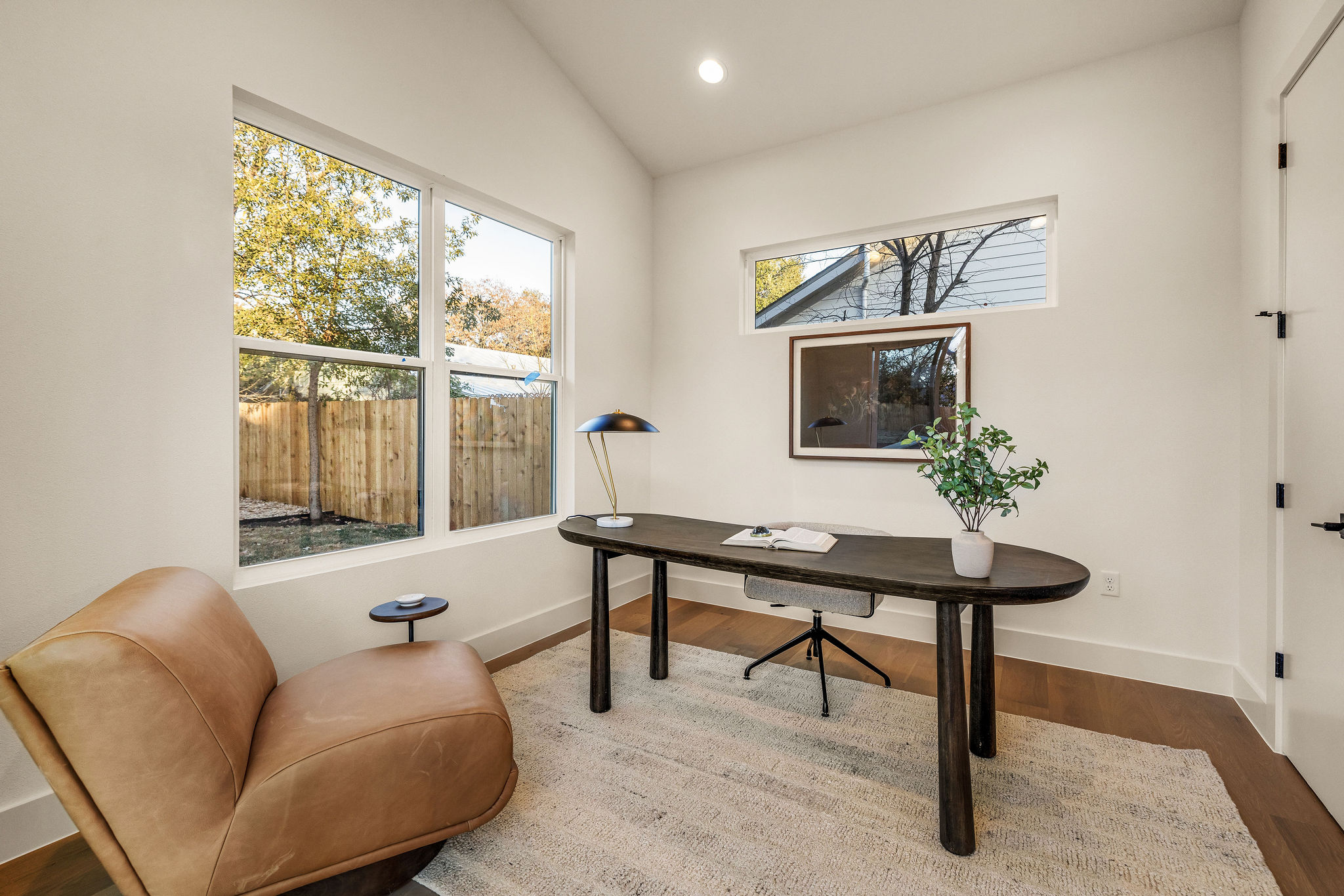 Welcome to 1301 Ruth Ave. in the Crestview Neighborhood. Gorgeous Custom Build featuring the Primary on Main in one of Austin's hottest neighborhoods. This Modern Pool House By Rivendale Homes features a bonus Casita !!!!!! In the main house, the primary and a secondary bedroom are down, with 2 bedrooms and a flex space up. The guest house can double as an exercise room, office, game day lounge, separate kid hangout, hobby room. This 2-story home features an open floor plan with tall ceilings, loads of windows allowing for abundant natural light, and thoughtful finishes throughout. The Primary Owner's suite redefines the spa experience with upgraded tile, soaking tub and oversized walk-in shower, situated on the main floor that leads out to the covered backyard patio and Pool + Pool House area. The kitchen, dining, and open living room w/ fireplace overlook the pool + Pool house and rear yard space through the dramatic sliding glass doors. The kitchen space includes a generous island with plenty of bar seating with an island sink, across is the gas cooktop. The spacious upstairs includes two bedrooms,Plus a large open flex area, game room/playroom or media room awaits . This large additional living area is hard to find in this well-established neighborhood. With Brentwood Social House, Stiles Switch BBQ, and many other restaurants and shops nearby plus Brentwood Park just minutes away, you’ll be able to take full advantage of the home’s incredible location! Don’t miss your chance to own your piece of Austin charm! 1,2,10 Warranty. NO HOA.