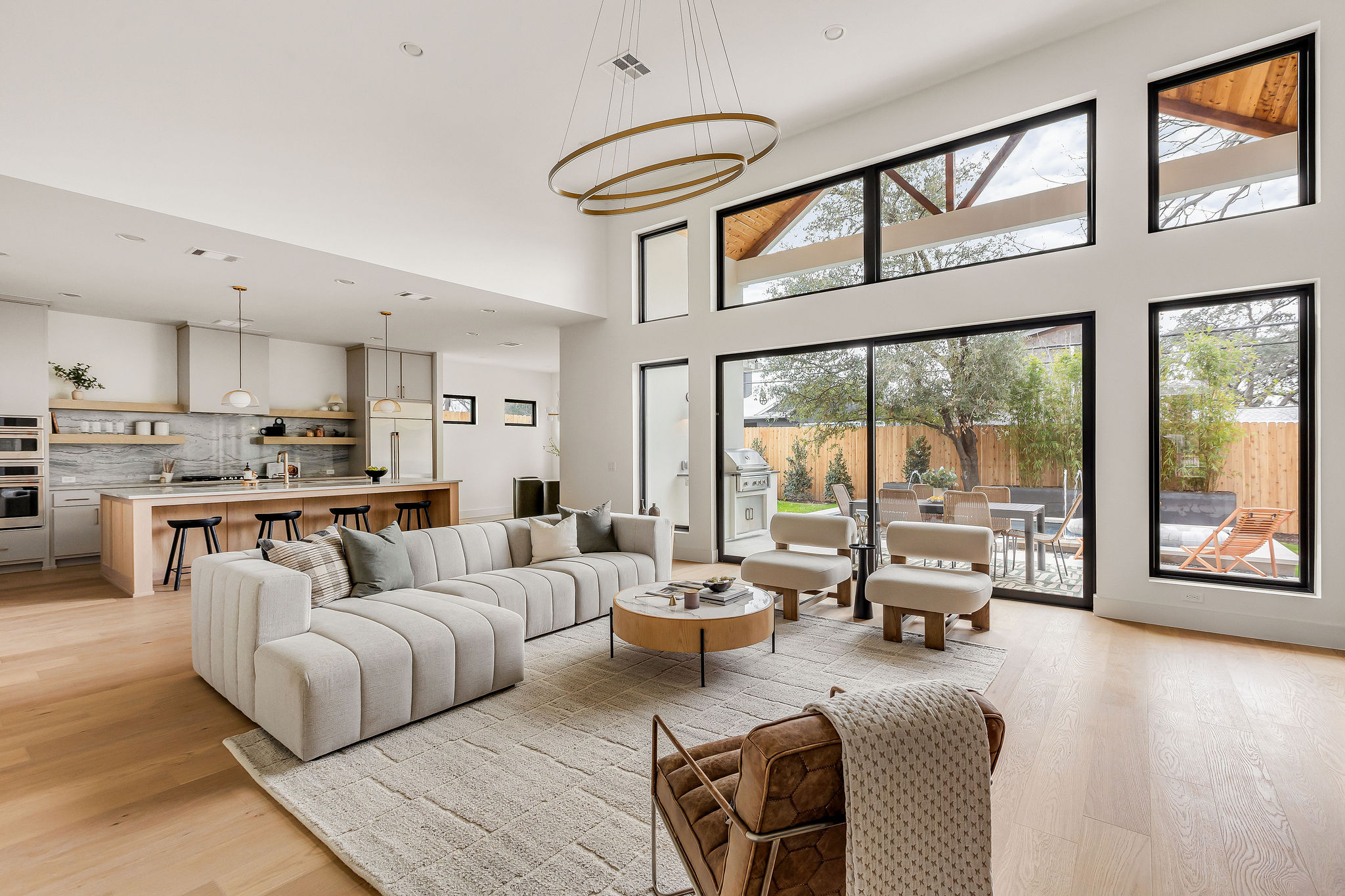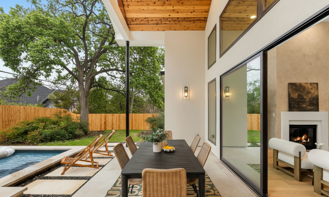 Nestled on a picturesque street in Allendale, 2607 Richcreek., is a stunning, brand-new, single-story home Built by Award Winning Rivendale Homes. Spanning over 3,200 sq ft, this thoughtfully designed residence features 4 bedrooms, 3 bathrooms, including a separate media room/ Office, and an exceptional resort-style backyard complete with a pool, water feature, outdoor living area, and grill station. With its functional layout, luxurious amenities, and high-end finishes, this home offers modern elegance and versatile living at its finest. Step into this spacious home where the expansive kitchen and living room offer stunning views of your elegant outdoor living space and sparkling pool. Perfect for relaxation and entertaining, the living area seamlessly connects to outdoor living. This home's kitchen is a chef's dream, featuring a spacious layout with a large central island that's perfect for meal prep, casual dining, or entertaining. Outfitted with high-end appliances, this kitchen combines functionality with luxury. This home features ensuite secondary bedrooms that provide comfort and privacy, along with a dedicated media room for movie nights or gaming. The luxurious primary suite features a spa-like bathroom with premium finishes, and a spacious walk-in closet. This home is designed for modern living, blending style, comfort, and functionality. Situated within walking distance of award-winning schools and offering easy access to both downtown Austin and The Domain, this home is nestled in a beautiful, tree-lined neighborhood. Enjoy the charm and convenience of this highly sought-after location.